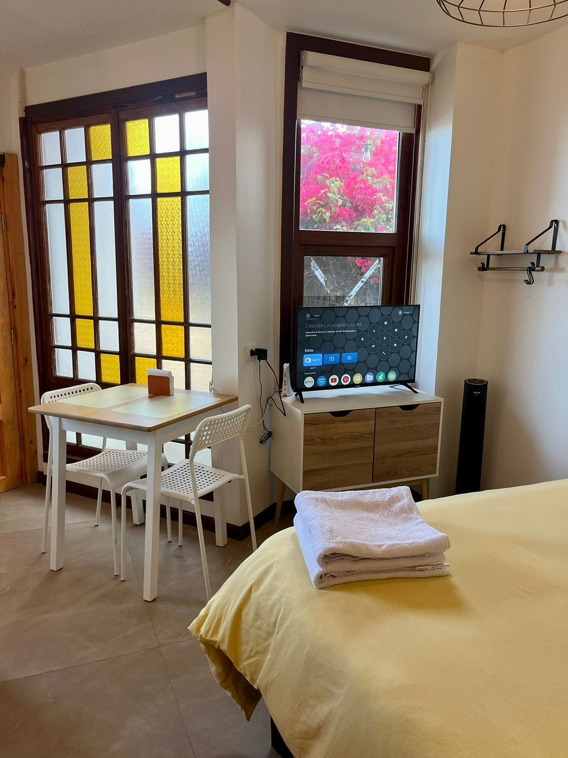 Vive una experiencia única en este estudio luminoso y acogedor. Disfruta de una espectacular vista panorámica al océano y la playa desde el amanecer. Su decoración cálida combina detalles modernos y exclusivos, como su ventanal con vidrios de colores. Es el lugar ideal para parejas o viajeros que desean descansar, relajarse y disfrutar del mar muy cerca.